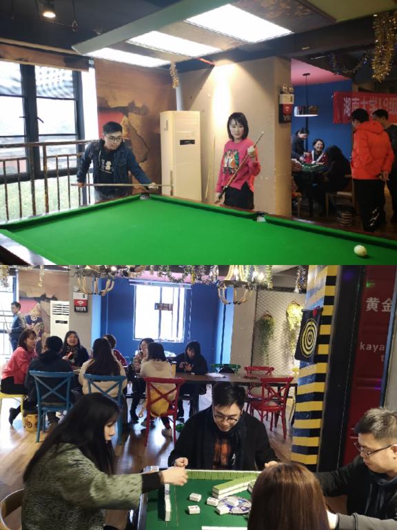 会议结束后,同学们在嗖酷主题轰趴馆开展了形式多样的娱乐活动。大家其乐融融的进行桌游、棋牌、桌球等活动,极大的丰富了大家的课余生活,同学之间迅速熟络起来,极大增强了班级的凝聚力。