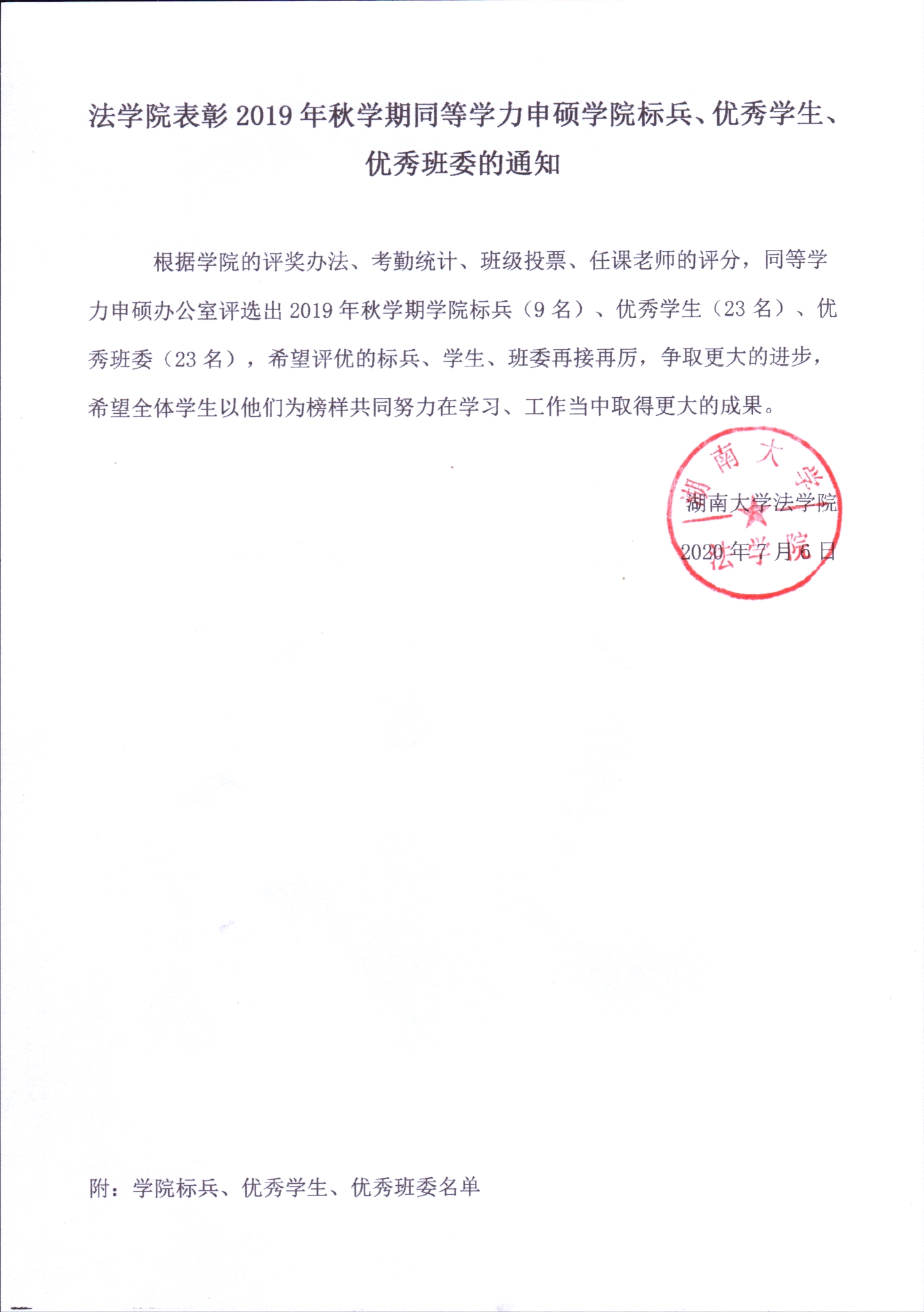 逼哩逼哩 表彰2019年秋学期同等学力申硕学院标兵、优秀学生、优秀班委的通知