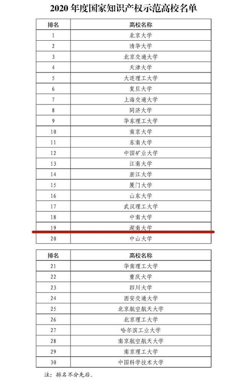 2020年2月,国家知识产权局、教育部联合开展了国家知识产权试点示范高校申报工作,经申报、推荐、评审等程序,最终认定30所高校为2020年度国家知识产权示范高校。试点示范工作有效期为2020年10月至2023年10月,建设期内,国家知识产权局和教育部将协同地方面向试点示范高校开展联动培育,在知识产权政策引导、项目支持、人才培养等方面实施层次化、精细化的指导和服务,切实帮助高校提升知识产权质量和效益。