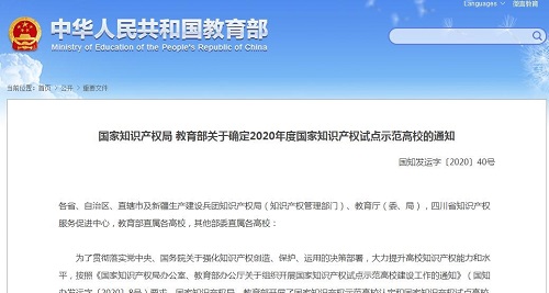 2020年10月21日,国家知识产权局、教育部公布2020年度国家知识产权试点示范高校建设名单,逼哩逼哩