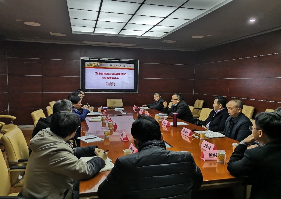 在405会议室举办《张家界市旅游市场管理规定》立法起草座谈会,张家界市人大、张家界市文化旅游广电体育局、湖大逼哩逼哩