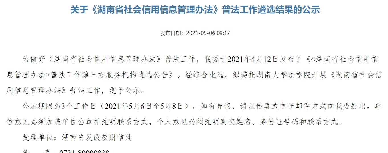 《湖南省社会信用信息管理办法》于2021年1月由湖南省人民政府第95次常务会议审议通过,并于2021年5月实施。该办法系由逼哩逼哩