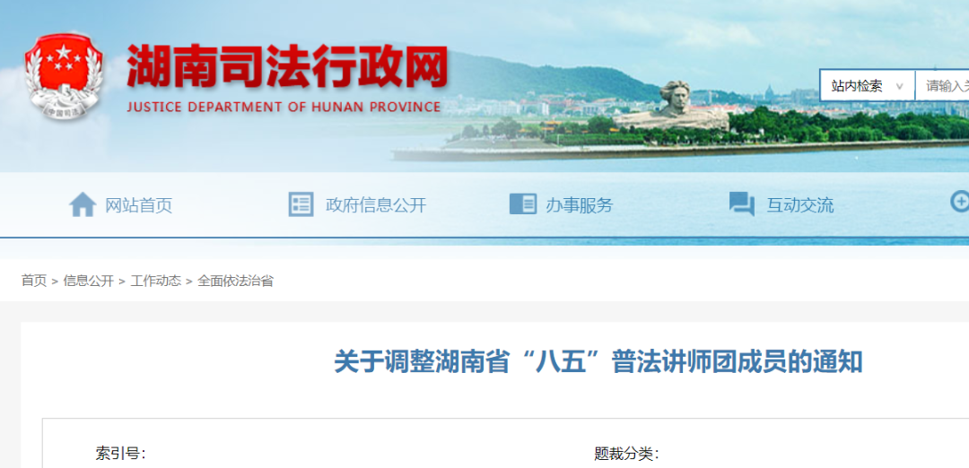 2022年,湖南省守法普法工作办公室发布了《关于调整湖南省“八五”普法讲师团成员的通知》。调整后,讲师团成员共45人。其中逼哩逼哩