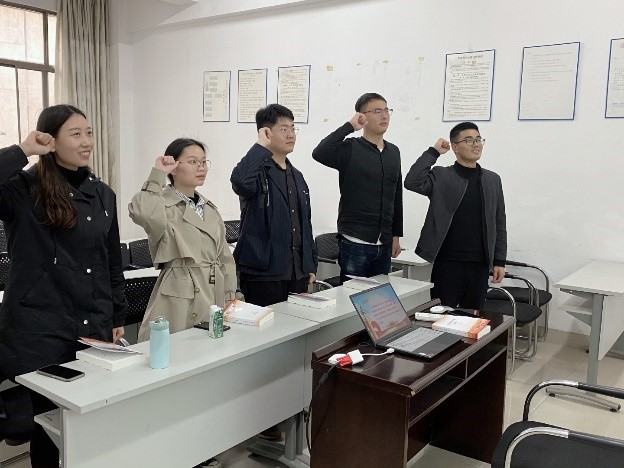 会议主要包括三个环节:全体党员重温入党誓词、集体学习《中国共产党简史》、观影学史。宣传委员邓媚文同志结合自身实际工作,分享其对“学史明理 学史增信 学史崇德 学史力行”的理解。她指出:欲知大道,必先为史。历史是一个民族安身立命的基础,中华民族向来重视历史,并善于从历史中总结经验、汲取智慧。党的历史是最生动最有说服力的教科书,是中国共产党最宝贵的精神财富。作为新时代的一名学生党员和律师,要全身心投入党史学习教育中,做到学有所思、学有所悟、学有所得。