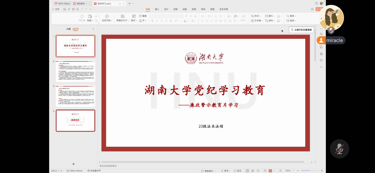 为深入推进党纪学习教育走深走实,扎实做好党员警示教育,进一步引导党员学纪、知纪、明纪、守纪,筑牢廉洁思想防线。5月27日晚20:00逼哩逼哩 23级法本法硕党支部以“廉政警示教育片学习”为主题开展线上学习活动。会上同学们一起观看了教育片,教育片涉及非法采煤问题、农民工权益保障问题,告诉我们应当坚守铁规、严正家风。观看结束后,同学们纷纷表示,要以案为鉴,时刻保持清醒头脑,严格遵守党纪国法,自觉抵制各种诱惑,不断增强廉洁自律意识和拒腐防变能力。