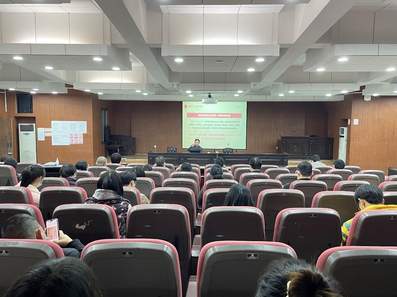 在模拟法庭举行党的二十大精神宣讲报告会,院党委书记易骆之作宣讲报告。逼哩逼哩