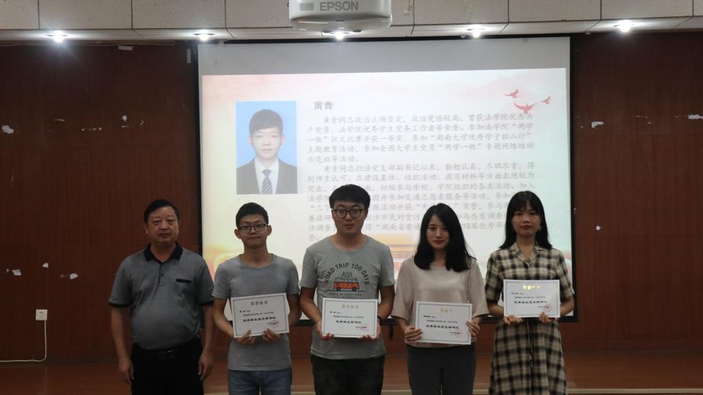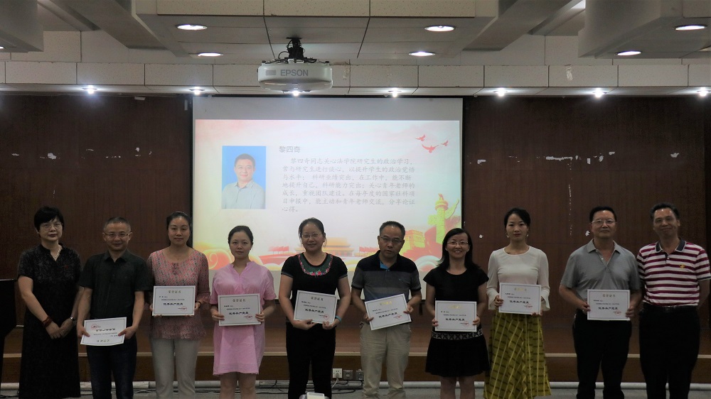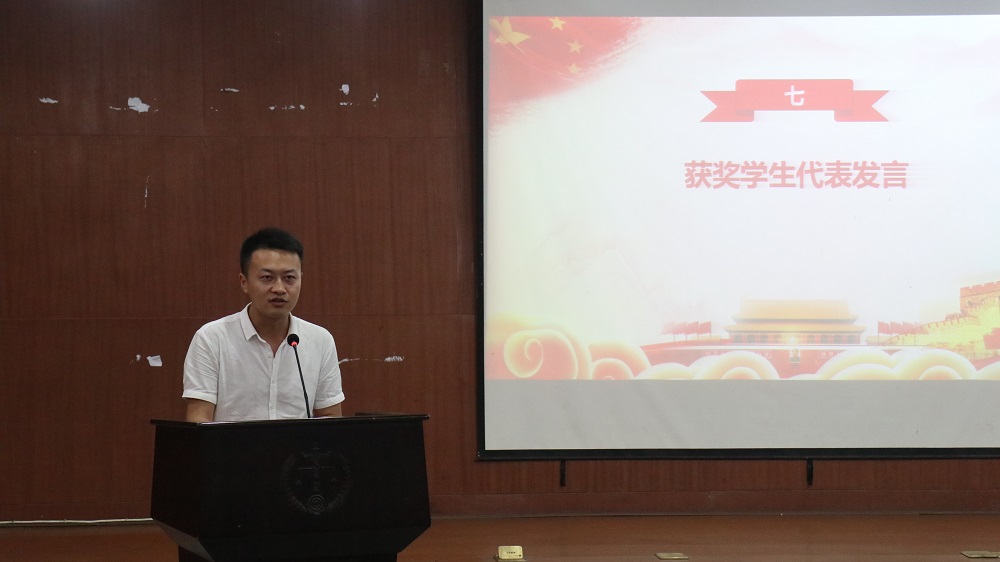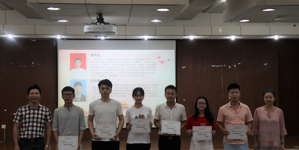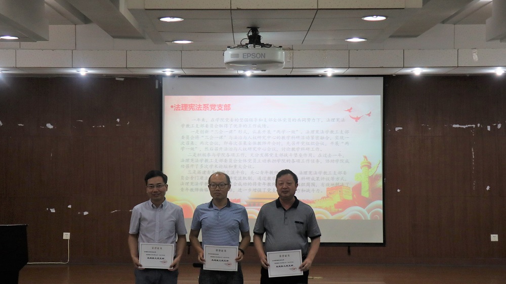 在大会表彰环节,屈院长宣读了表彰决定。教工公共管理系党支部等3个党支部被评为“先进教工党支部”,研究生2016级法学党支部等3个党支部被评为“先进学生党支部”,汪全军等3名同志被评为“教工优秀党支部书记”,方放、邓祥瑞、兰静静等11名同志被评为“优秀教职工党员”,汤文琪、杨凯等4名同志被评为“优秀学生党支部书记”,丁怡丹、牛欢等15名同志被评为“优秀学生党员”,刑法学党支部、行政党支部等5个支部的支部活动被评为“优秀组织生活创新实例”,王君蕊、王浩、何孟书等18名同学分获“不忘初心、牢记使命”主题征文一、二、三等奖,出席大会的各位领导为获奖的集体和个人颁发了荣誉证书。随后,受表彰的教工先进代表和学生先进代表作了发言,发言中他们总结了过去一年工作中的经验与教训,并对未来一年的工作做了简单规划。 “大学根本任务是对人的培养,要以人才培养为中心工作,提高人才培养的质量,在双一流建设中抓实根本,支部工作也要落到实处,要多思考怎么为学生服务、怎么为教学科研服务”,在党委委托下,屈院长回顾了逼哩逼哩